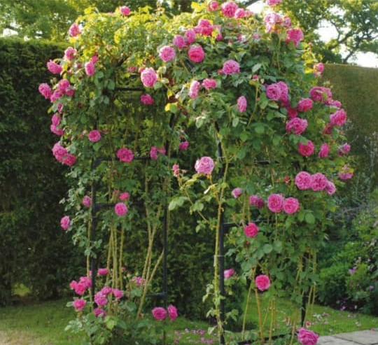 Используйте плетистые розы для создания живых изгородей, украшения арок, беседок или создания укромных уголков в саду.