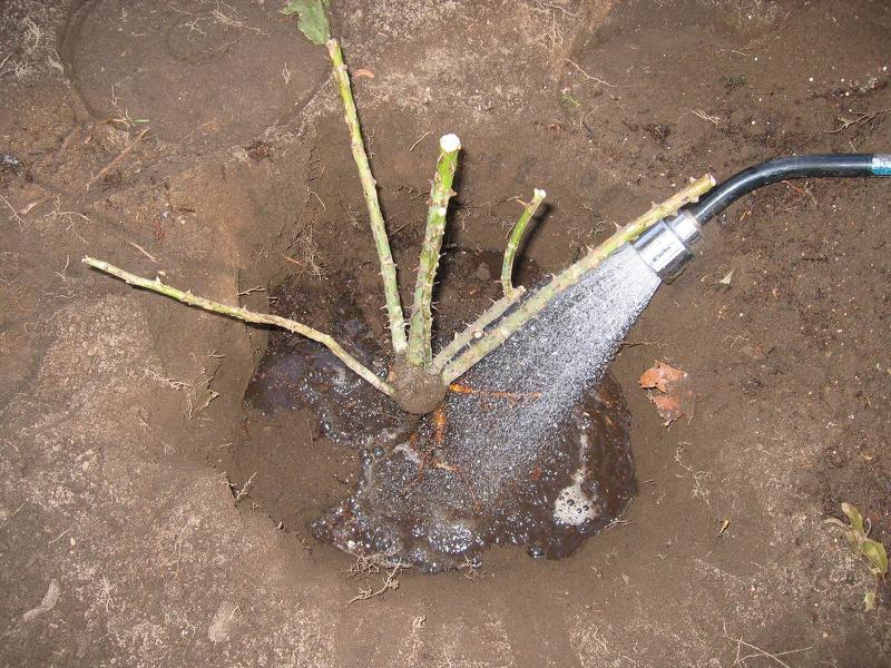 - Перед посадкой плетистую розу следует поместить в воду на несколько часов, чтобы корни стали мягкими и гибкими.