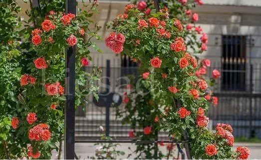 Роза плетистая "Оранж Мейландина"- это сорт, которыйй обладает выдающимися качествами-большой жизнеспособностью и яркой окраской. Сорт, характеризуется активным ростом и пышным цветением. На кусие, достигающем нескольких метров в длину, всегда много мелких ярких цветков. Необычные красно-оранжевые цветки в мелких соцветиях смыкаются в красочный зонт и "Горят" в любую погоду. Обильное цветение в течении сезона. Аромат лёгкий. Высота куста до 2 м, ширина 120 см.